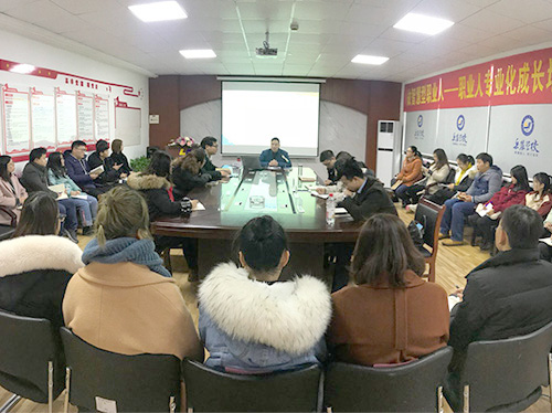 2019年1月19日上午9点30分,长沙岳麓专修学院党建指导员李国飞在学院大会议室为全体教职工作了一场题为【做智慧型职业人——关于职业人的专业化成长】的讲座。
