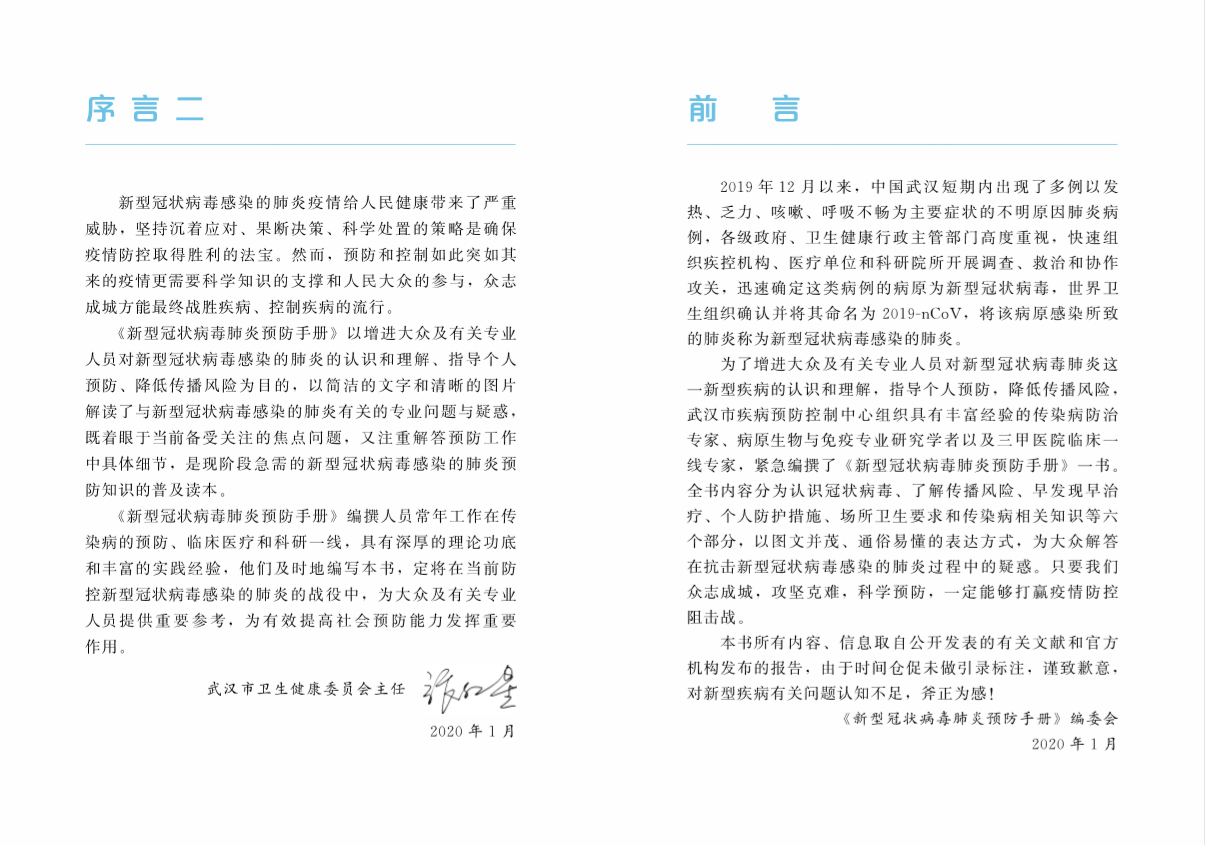 新型冠状病毒肺炎预防手册